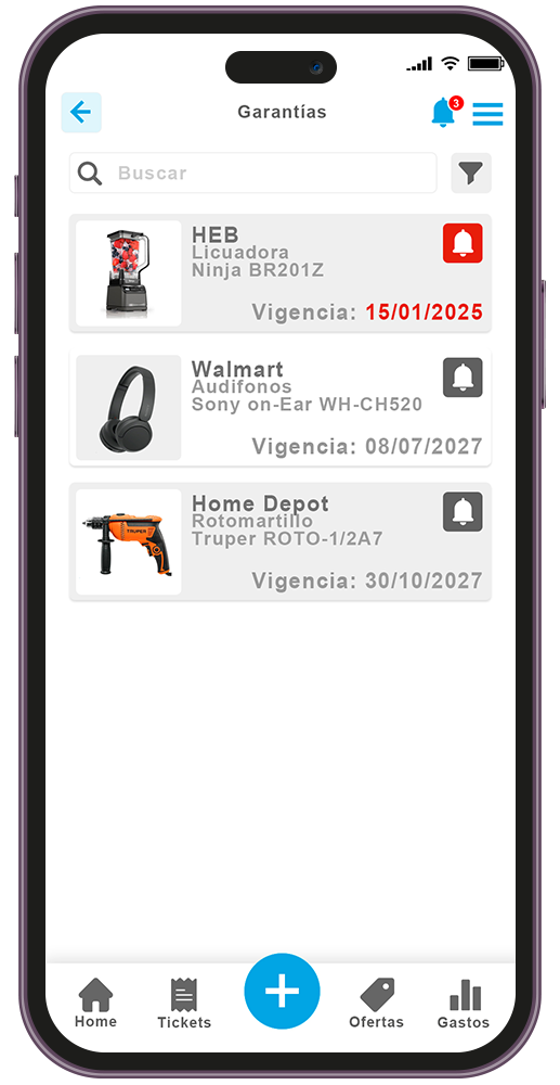 Configura alertas para recordarte fechas de vencimineto de las mismas.